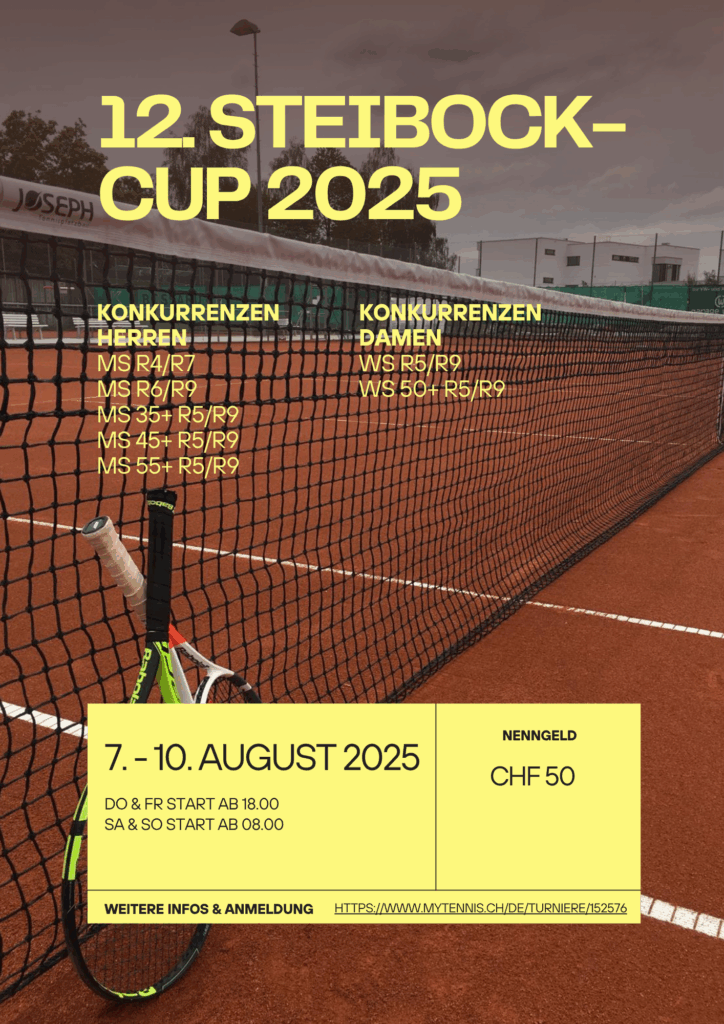 Wir laden herzlich zum 12. Steibock-Cup ein, der vom 7. bis 10. August 2025 auf unserer Anlage stattfindet.